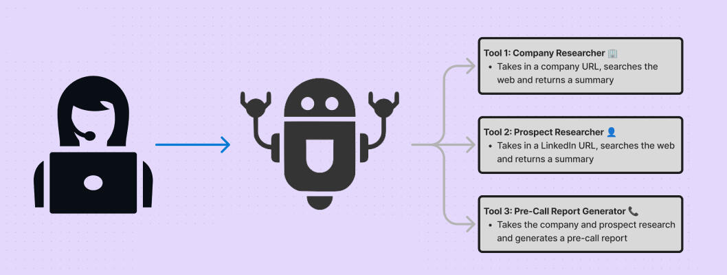 To help sales reps prepare for calls better by creating handy research tools that collect data on prospects and their company from across the web, which can be used to generate a pre-call report for them to use before taking each call.